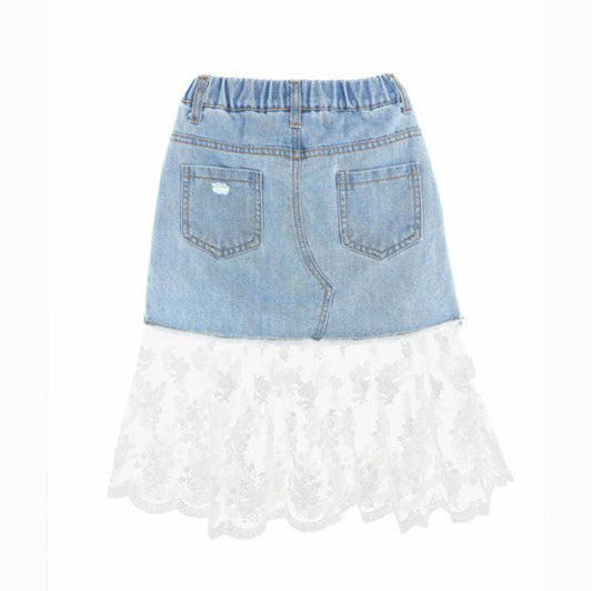 Denim Skirt with Lace Hem
