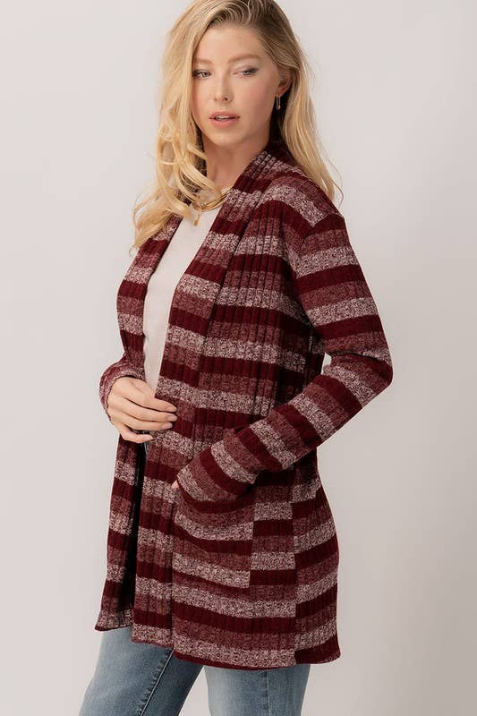Cozy Stripe Open Cardigan