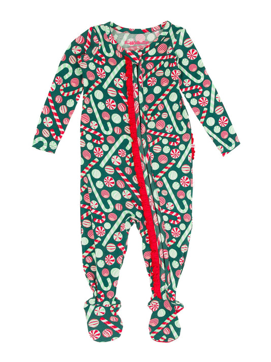 Playful Peppermint Bamboo Footed Ruffle Pajama