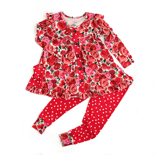 Rose Ruffle Zip Bamboo Floral Valentines Day Outfit