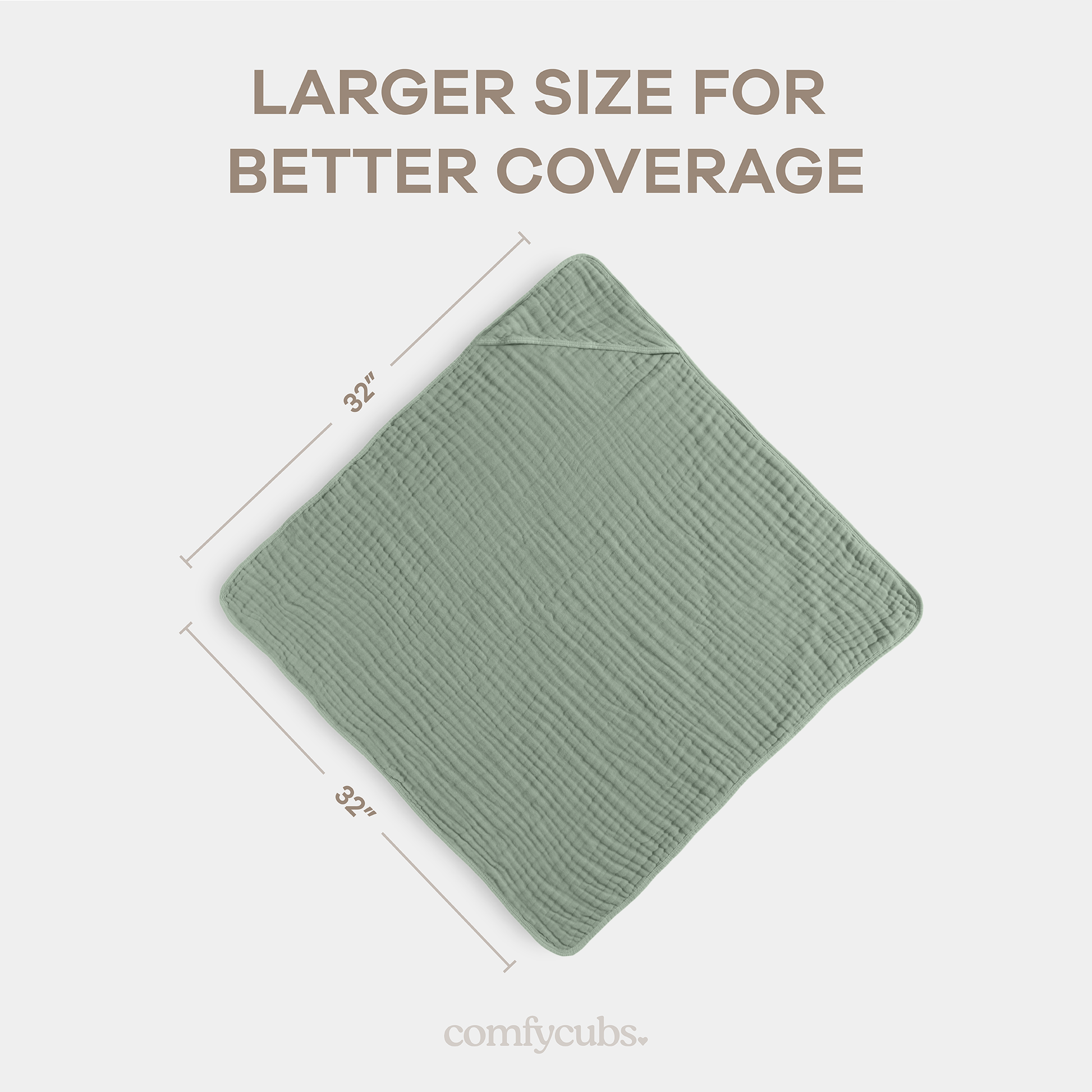 ⚫ Soft & Gentle: Made from 100% muslin cotton, Comfy Cubs hooded towels are designed with your baby’s delicate skin in mind. The ultra-soft fabric feels wonderfully comforting, ensuring your little one stays warm and snug after bath time