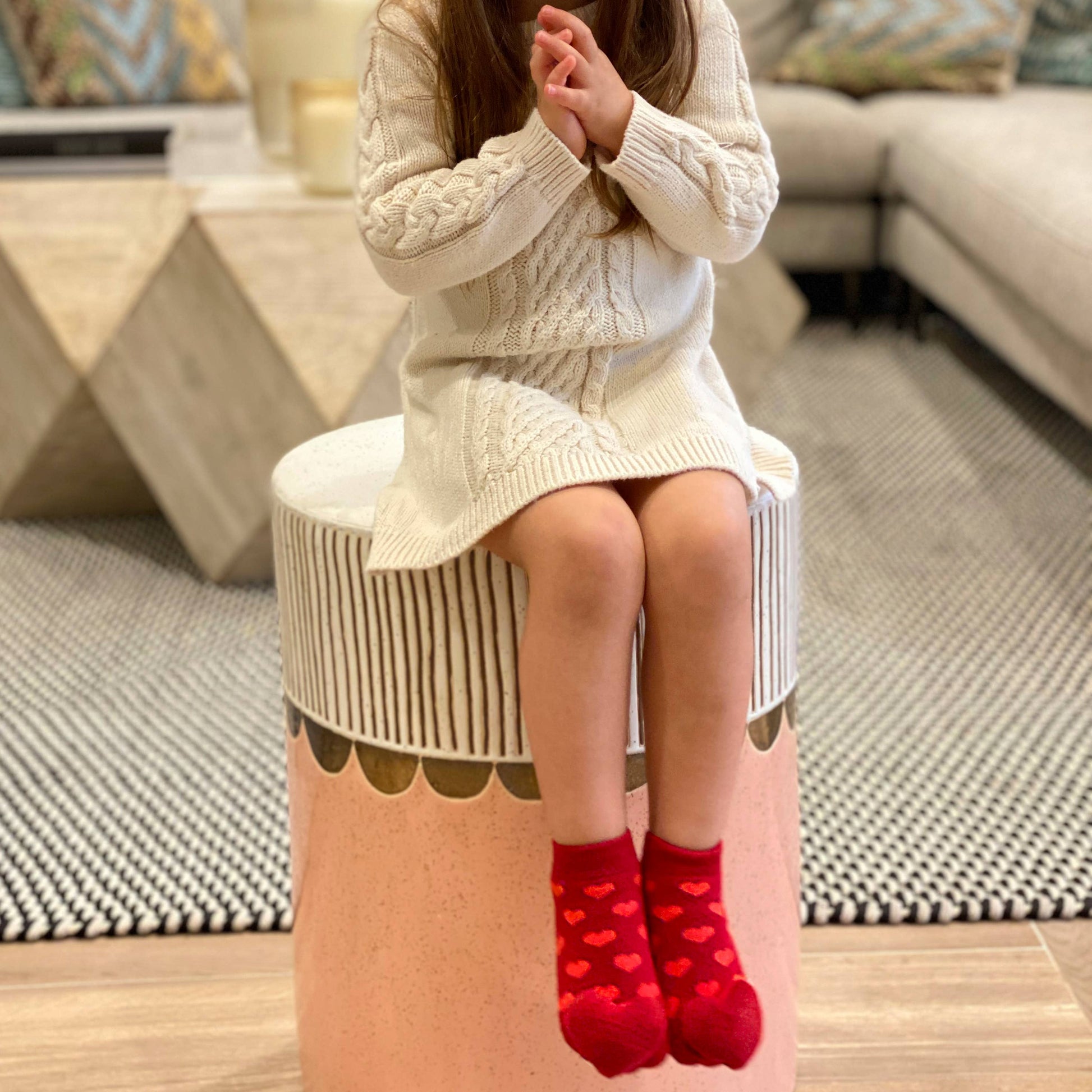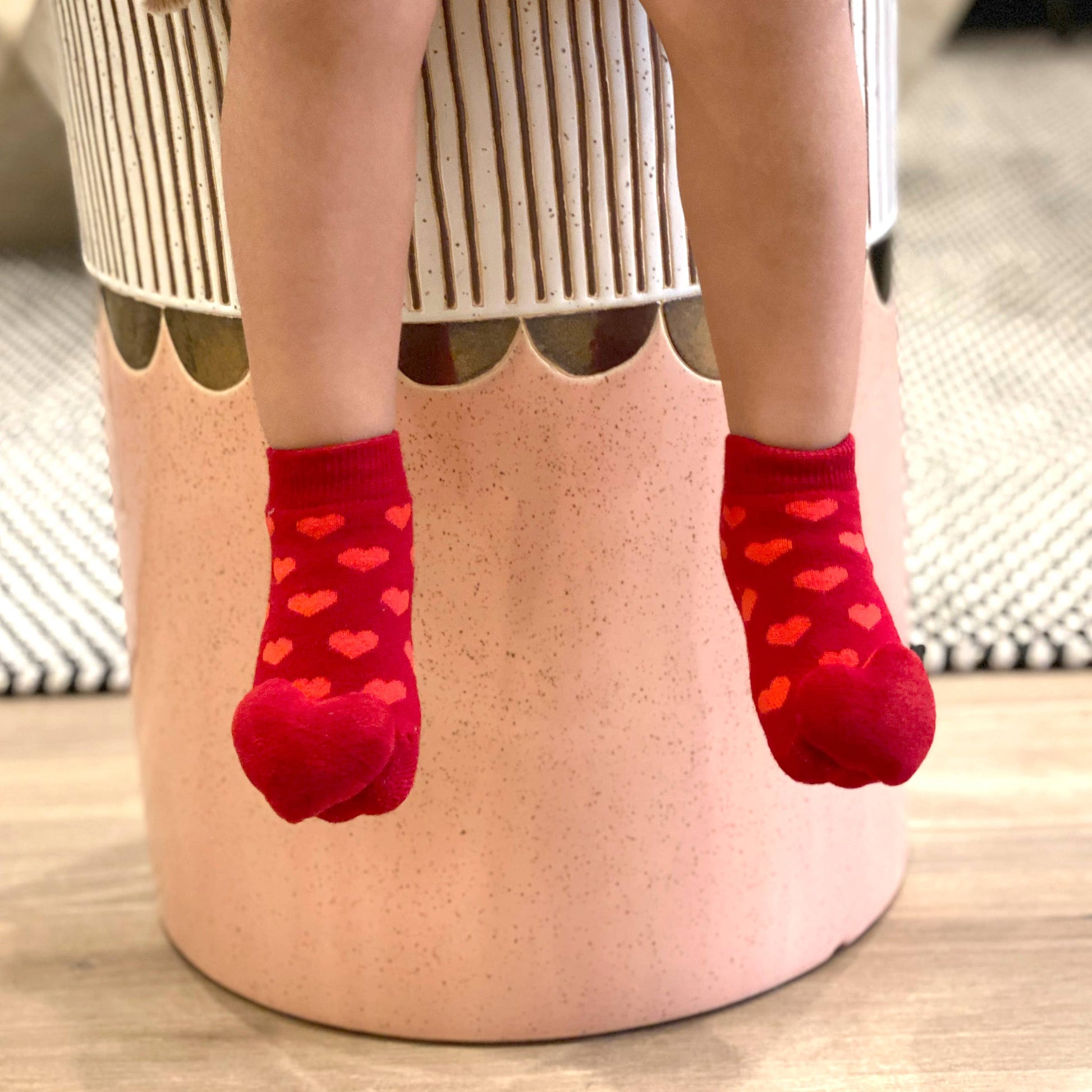 For Valentine's Day and all year long, these hearts spread love and happiness. Two-toned red heart-printed socks are accentuated by one big puffed heart on each toe.