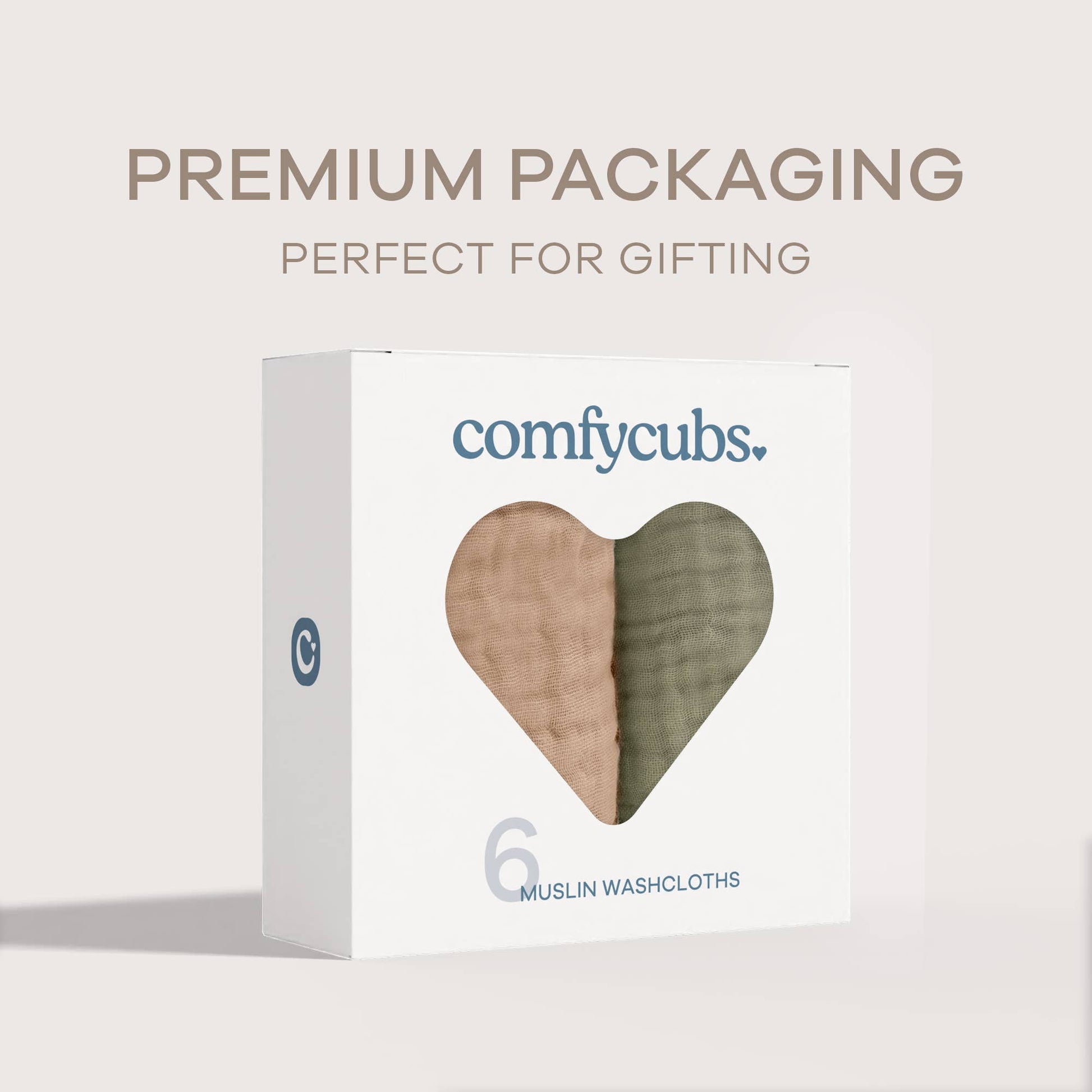 ⚫ Large Premium 10 X 10 inches Muslin Cotton Washcloths - Comfy Cubs Washcloths are made in a large 10 X 10 inches size and come in a convenient 10 pack.