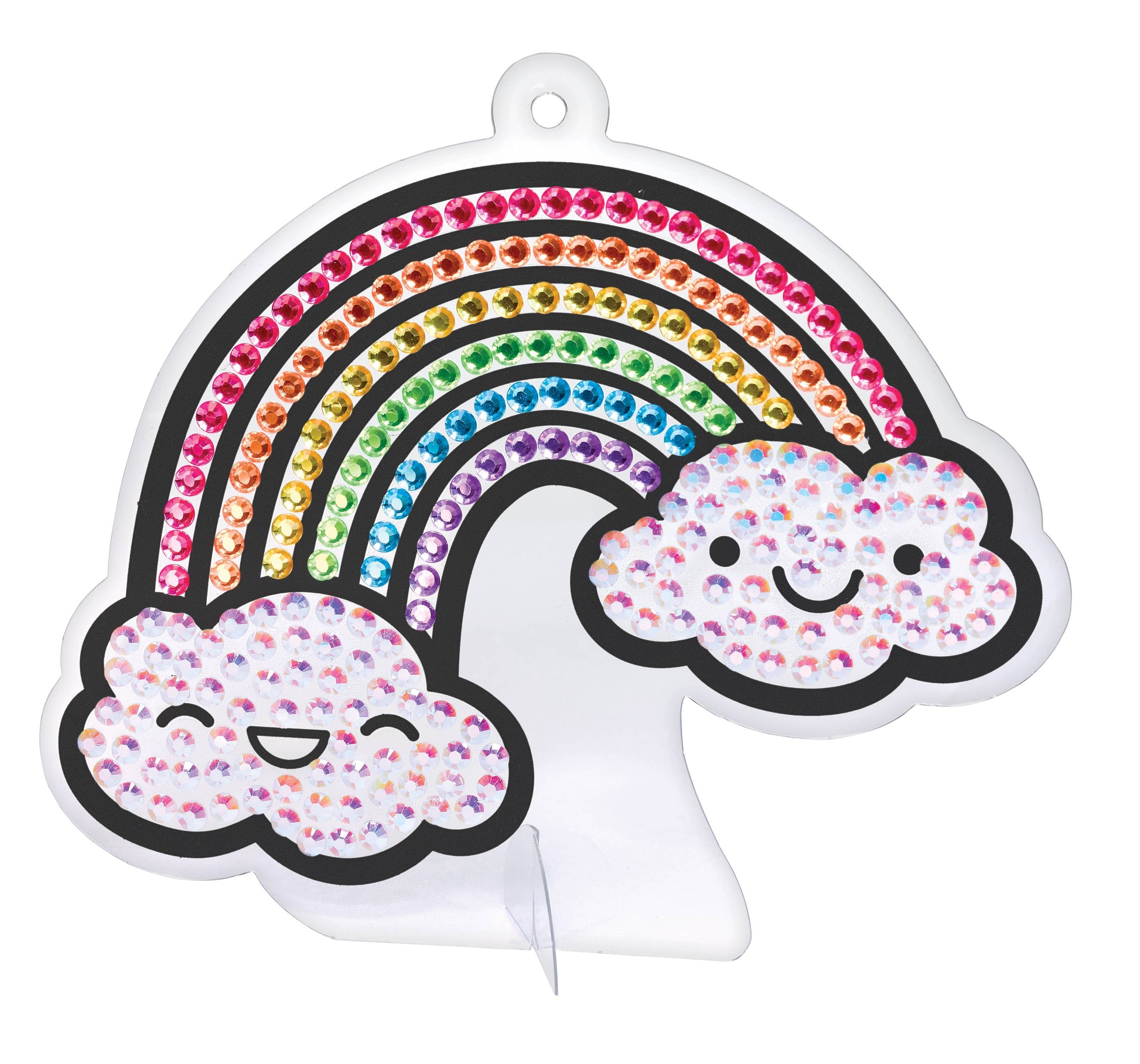 Add sparkling dimension to your traditional coloring and painting crafts with Big Gem Diamond Painting Magical! This kit introduces the joy of diamond painting to children in a magical and straightforward way with large sparkling gems, an easy-to-use stylus, and adorable magical images for them to proudly create and display their own diamond art. Enjoy two diamond painting activities inspired by our favorite magical creatures with 12 holographic stickers with printed dots for guided gem placement and two sun catchers with an open-ended design for children to use their imagination. Big Gem Diamond Painting makes diamond painting for kids easy with a no glue, no mess 3 step process: peel, pick up, and place! The fun is not over when the craft is complete! Stick your sparkling magical creature stickers to your favorite accessories such as a journal, pencil case, bookmark, and so much more.