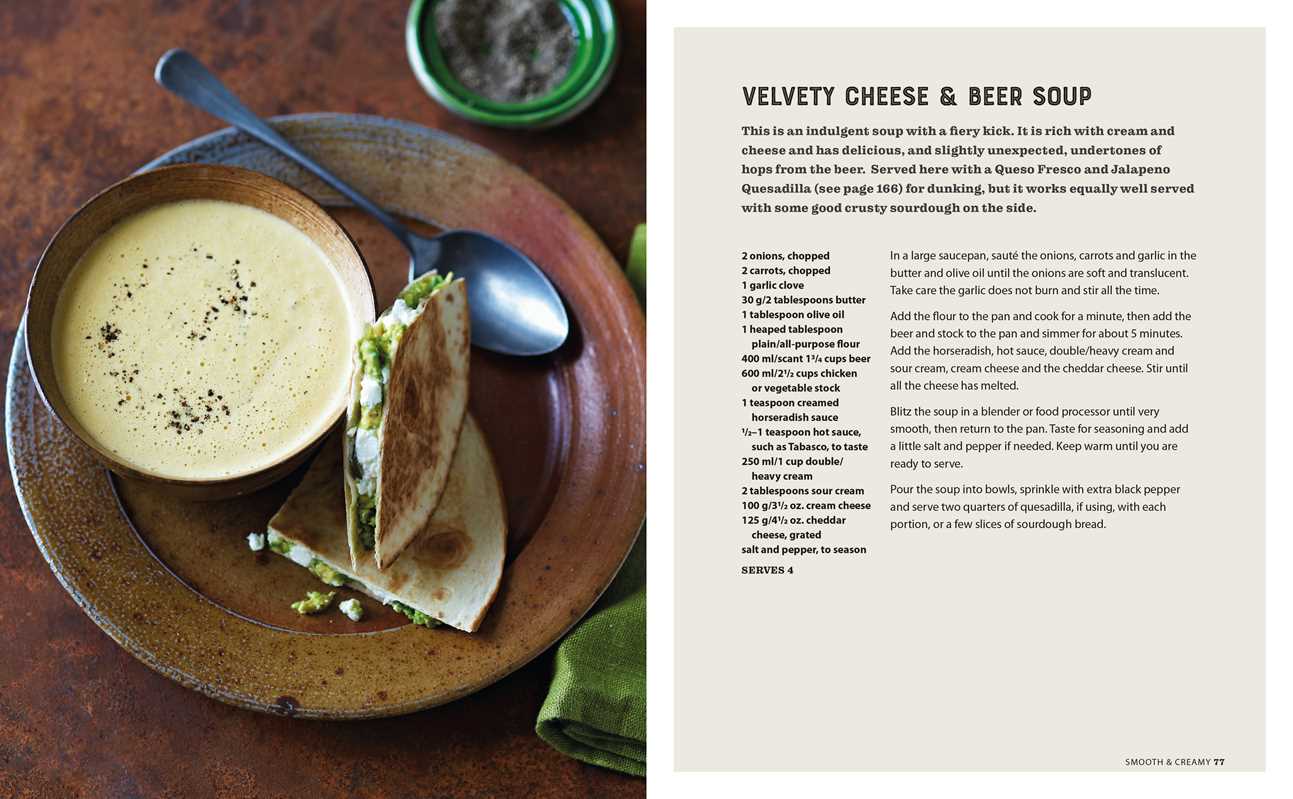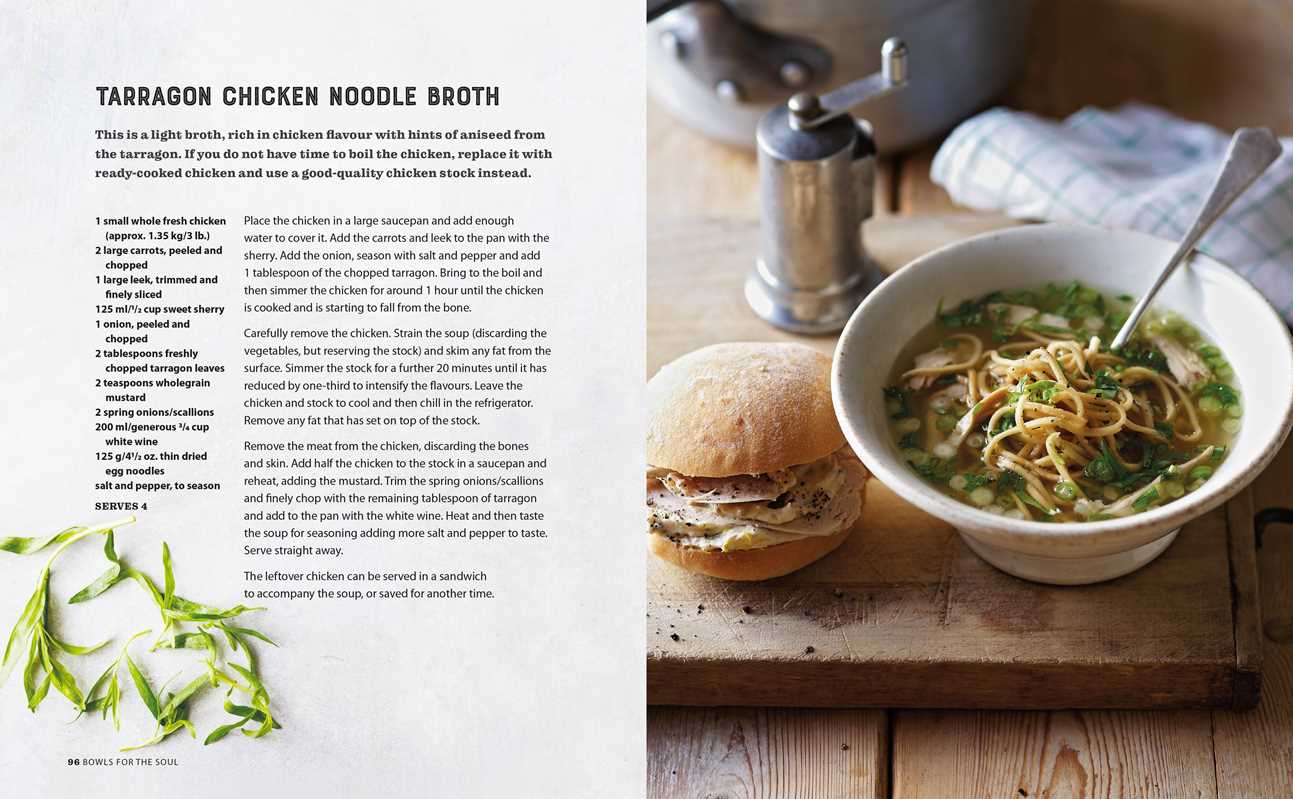 There are soups for every occasion, all of them brimming with flavour. When in need of something good for the soul, look to Chicken Noodle Broth or Chilled Broad Bean, Pea and Mint Soup. For those cold winter afternoons that call for something earthier, Roasted Cream of Tomato Soup with Pesto or French Onion Soup with Gruyere Rarebit are just the ticket. For ultimate nourishment,