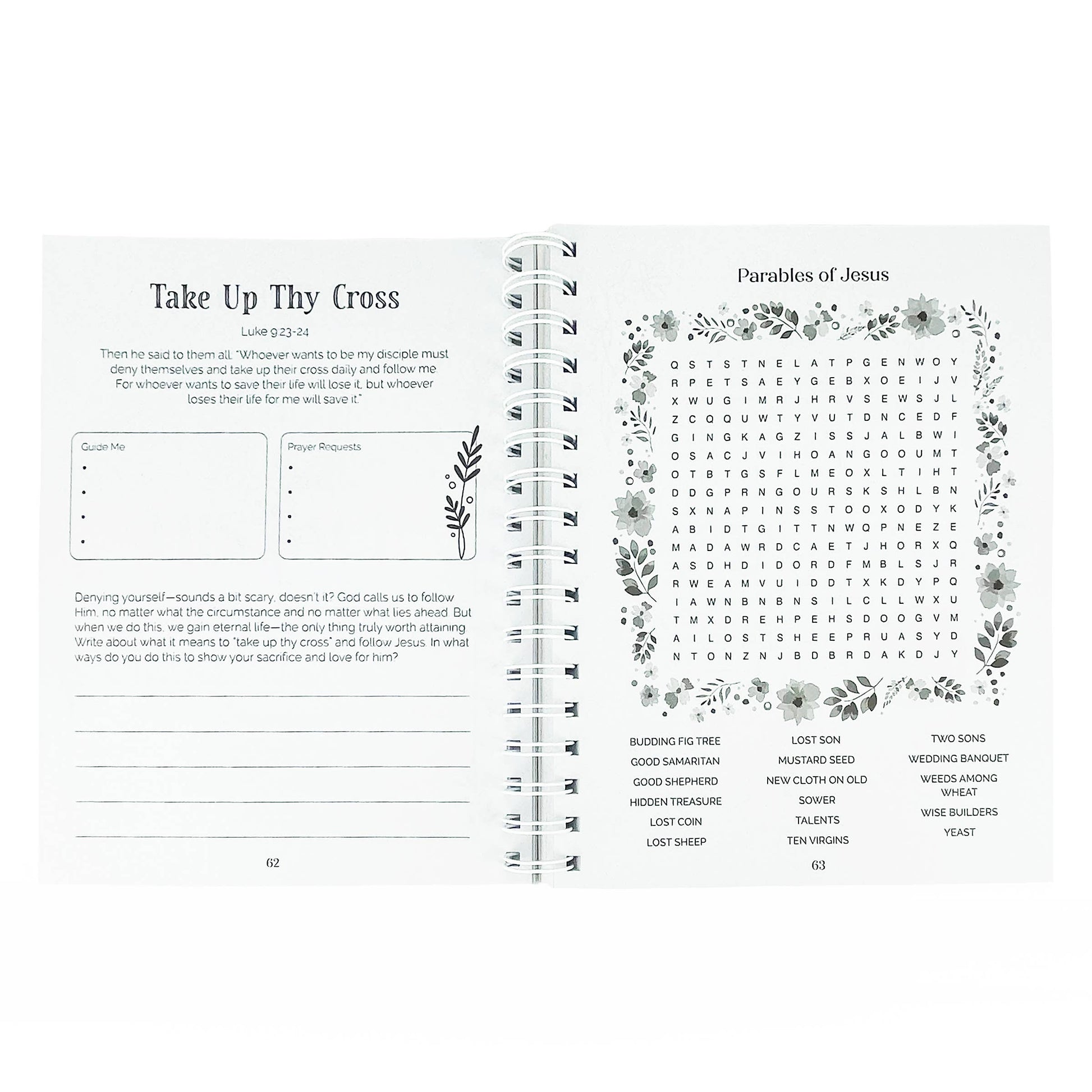 Dedicate time to yourself and your spiritual journey with this beautiful devotional journal filled with more than 350 inspirational puzzles and activities. You’ll find specifically paired weekly devotionals and journal prompts in this inspirational journal for women, so you can make the most of your spiritual thoughts and reflections. Included throughout is a wide variety of puzzles, word games, coloring pages, free spaces to doodle or write gratitude lists and prayer requests, and more!