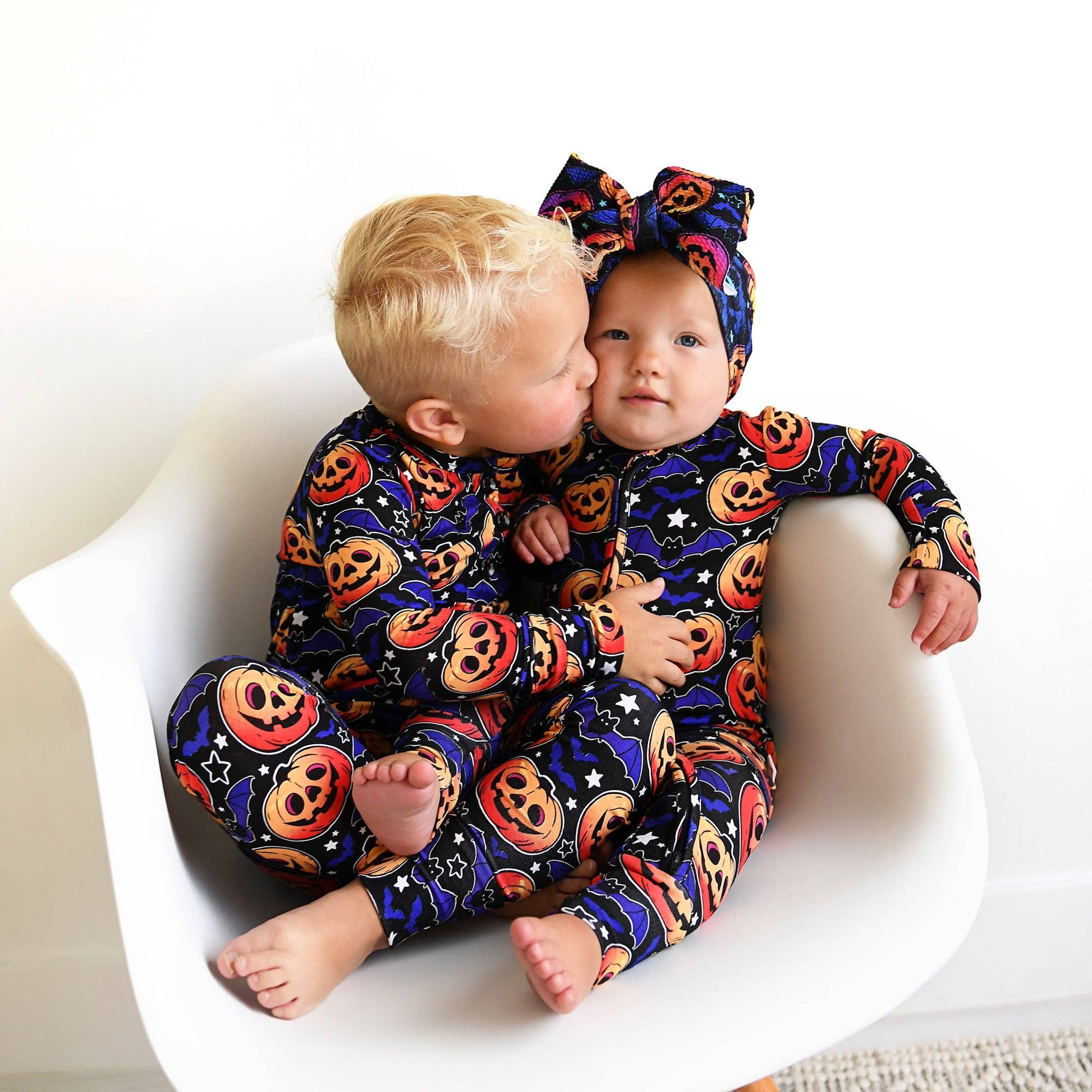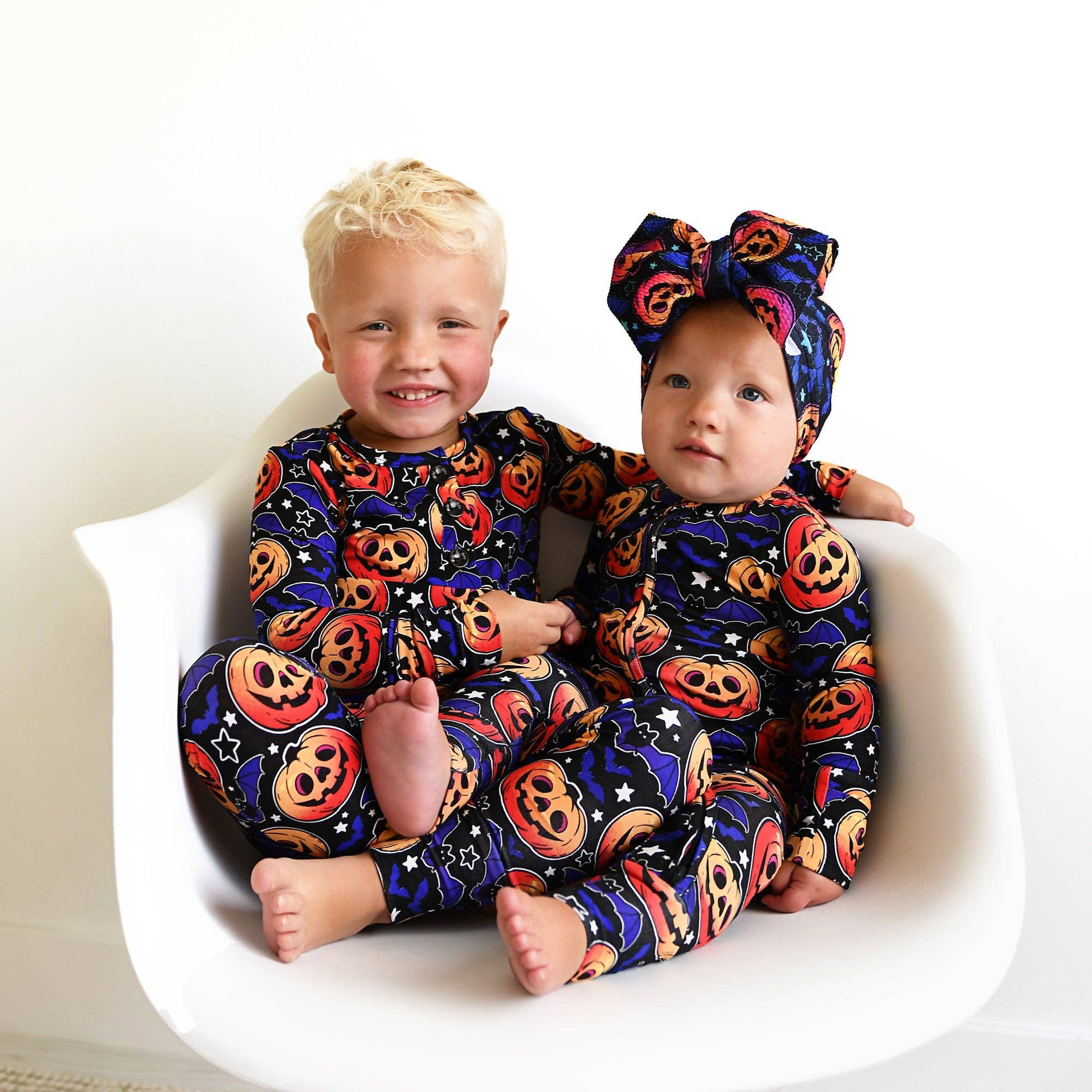 Bed time + spooky season = Edward Glow-in-the-dark PJs! Younger sibs can wear a matching sleeper. Just a quick tip: the more intense the light source, the brighter the glow will be. So if you're really aiming for a dazzling effect, make sure to give them a good charge before bedtime. Enjoy the glowing nights! This two piece ruffle outfit is super soft and comfortable and will make the most comfortable outfit! The fabric we used is super stretchy and breathable, made from bamboo viscose, wait until you feel how soft it is!