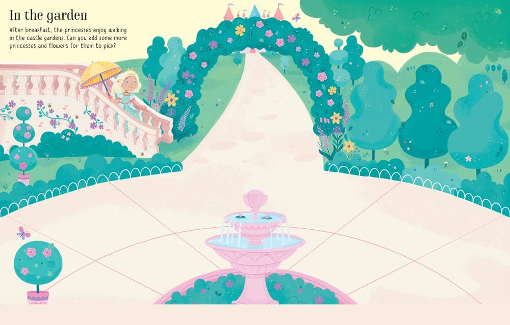 Caroline Young | Paperback | Series: First Sticker Books | JUVENILE NONFICTION/Activity Books / General | Join the princesses for a busy day around the castle, as they walk in the gardens, have a tea party, get ready for the ball and dance under glittering chandeliers. With over 200 stickers to choose from, children can use their creativity and imagination to complete each colourful scene.