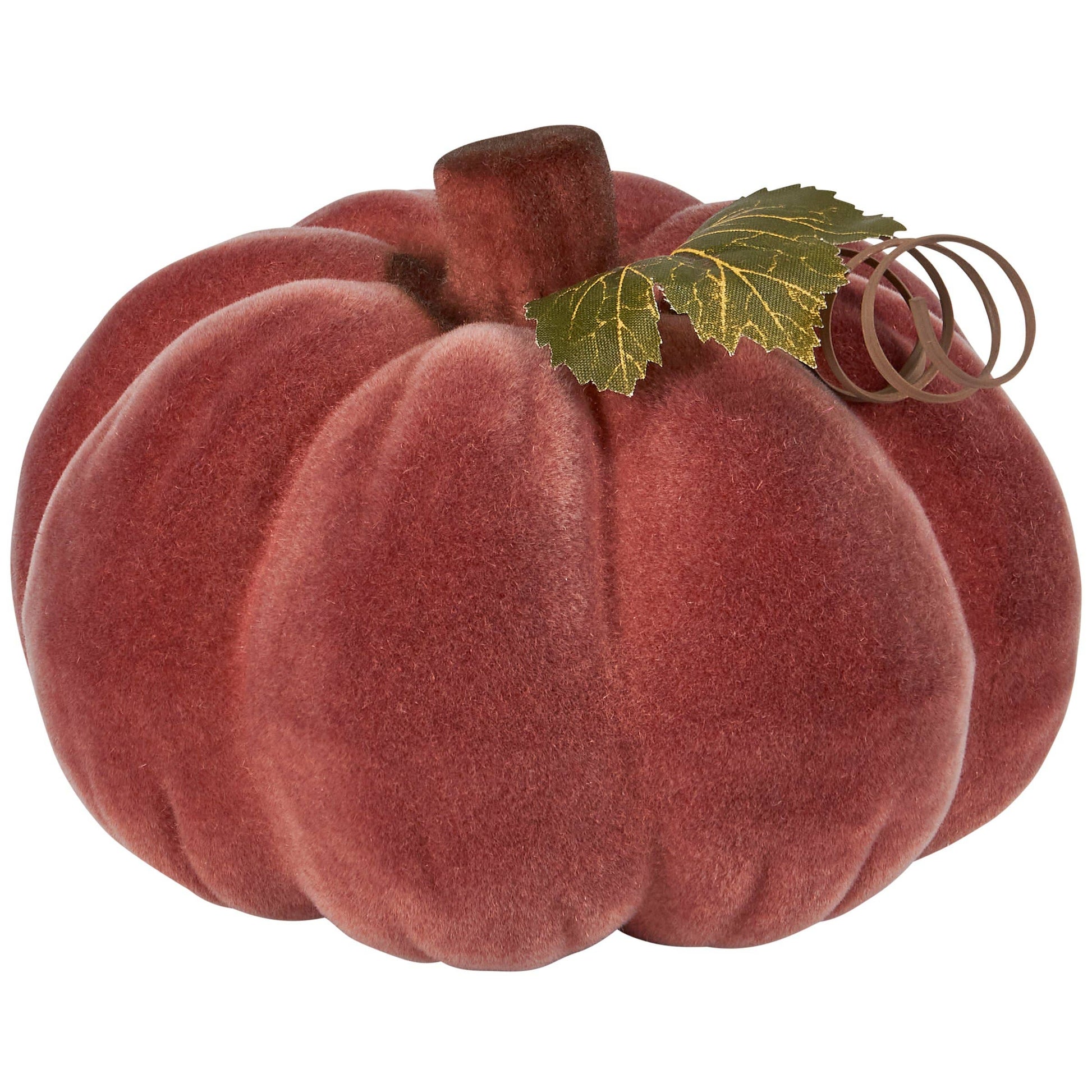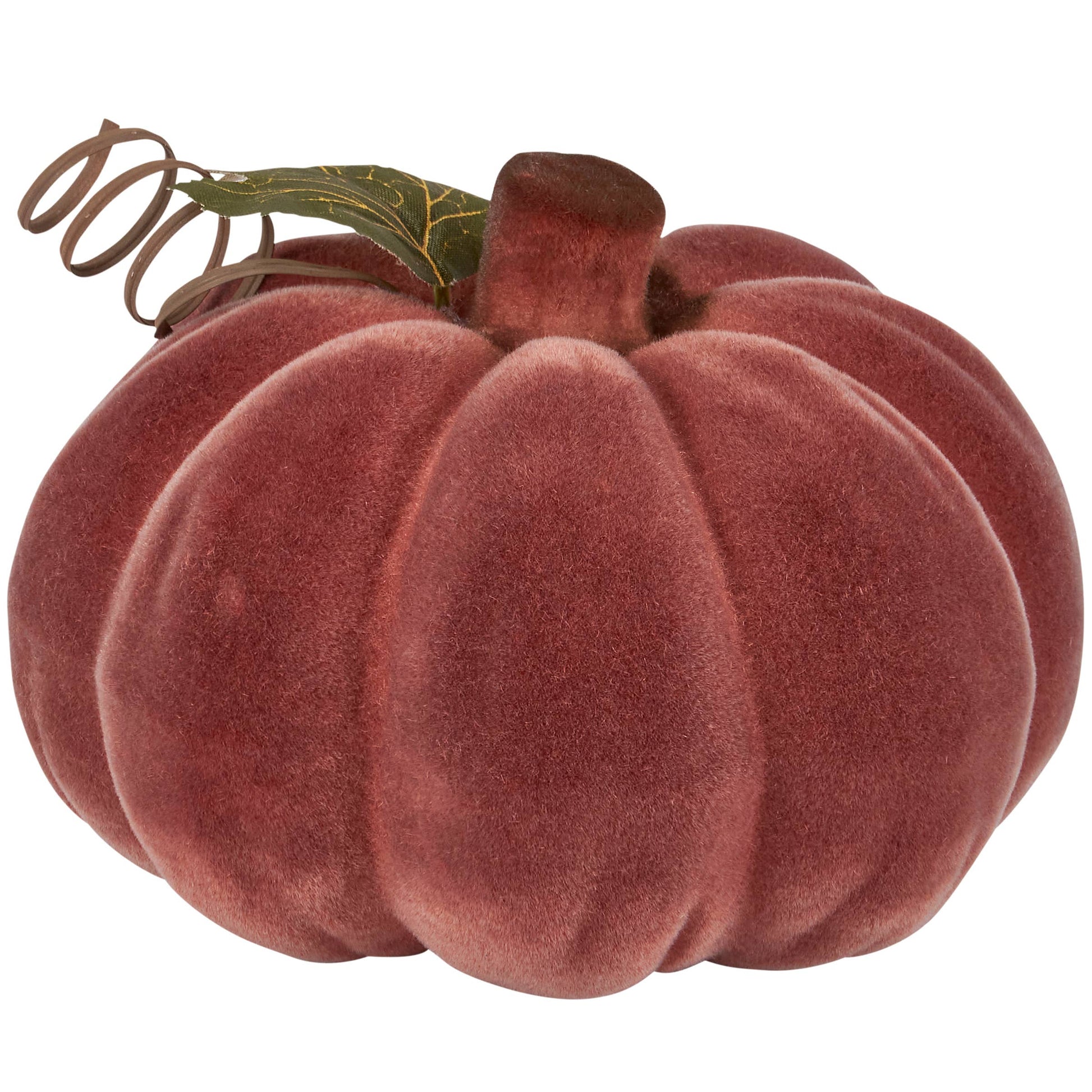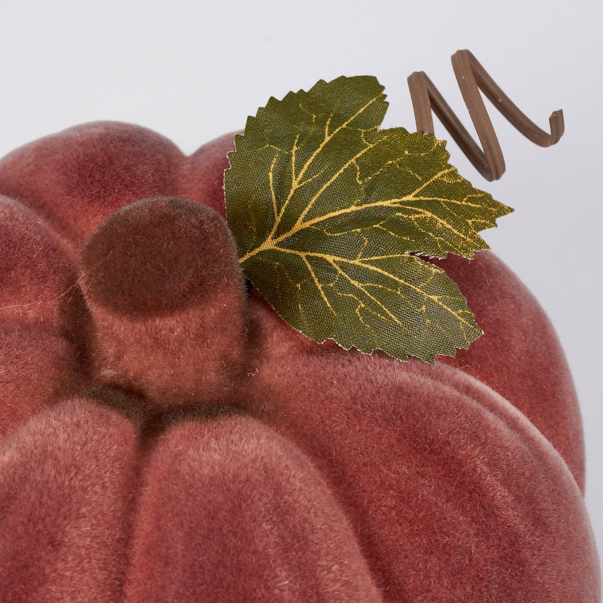 A decorative pumpkin from our Fall & Harvest Collection featuring a blush inspired brown flocked finish and brown flocked stem with faux greenery accent for added interest. Our Flocked Brown pumpkin is designed to free-stand on any flat surface. Place in a display to add a touch of autumn or with other decorative pumpkins as a collection. A blush inspired fall home accent with a variety of seasonal display options.