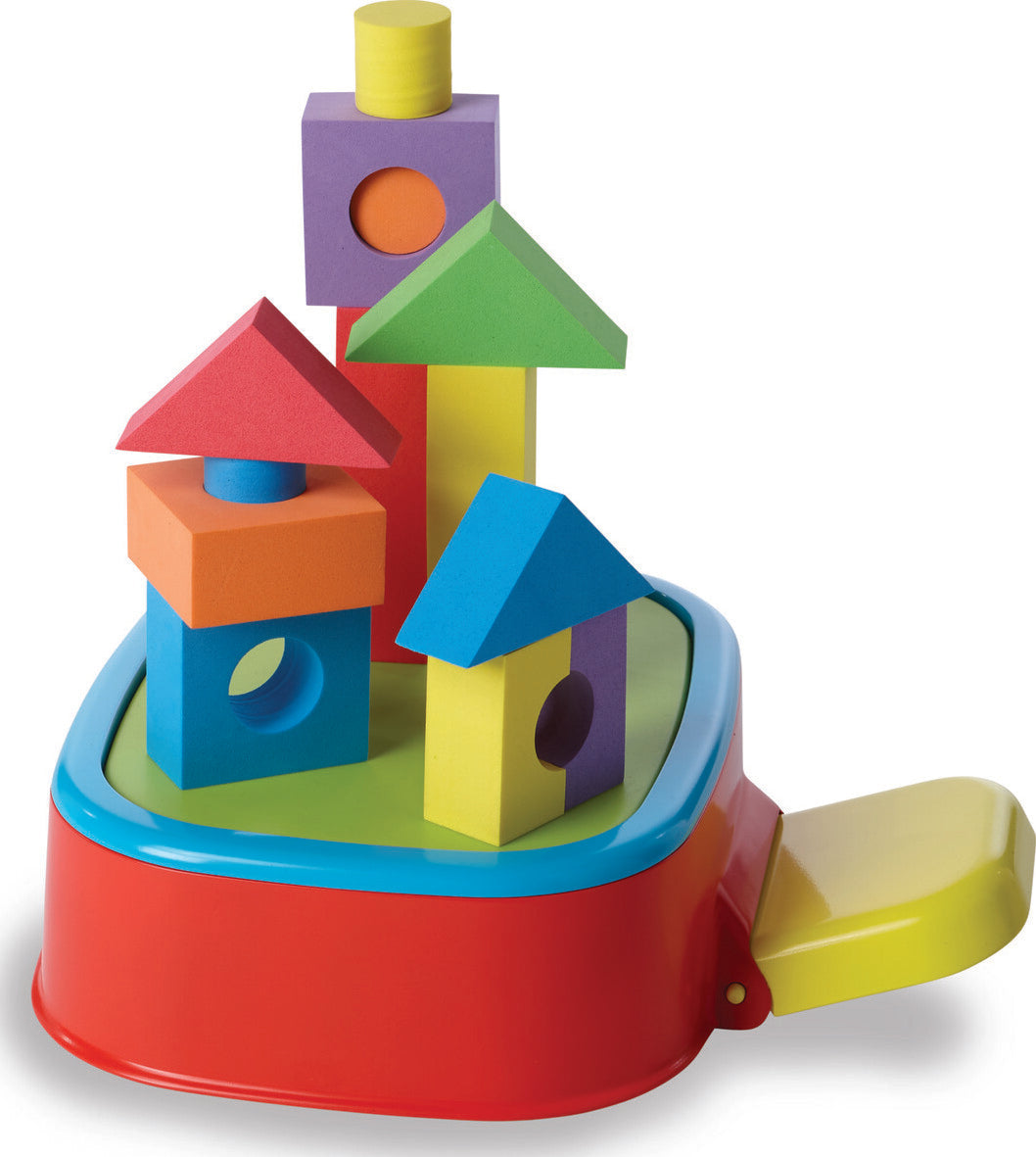 It's definitely fun to stack 22 colorful, lightweight foam blocks on the platform. But stomping on the launch pad to send them flying over 6' in the air? Now, that's even more fun! Includes a guidebook for cool play ideas.