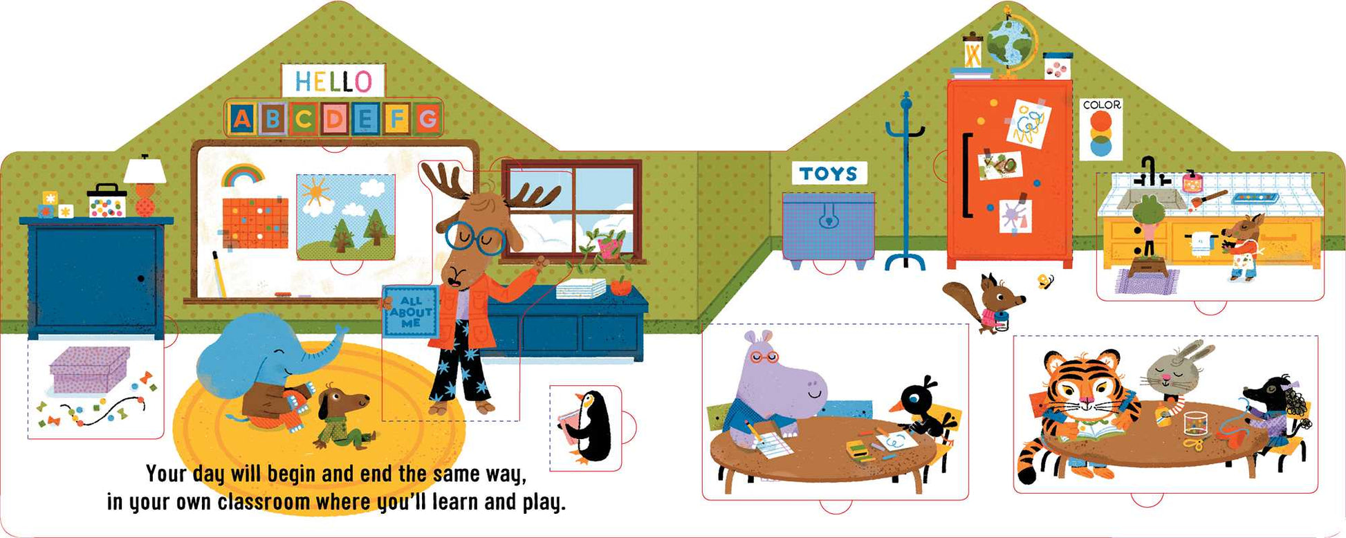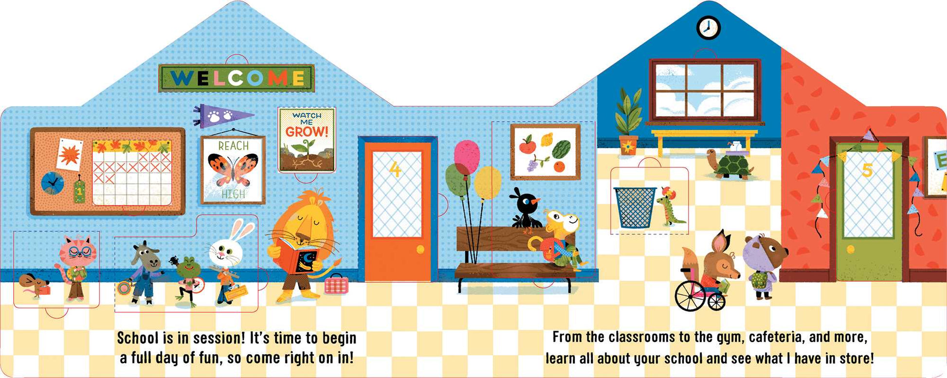 Welcome to the first day of school! Go on a lift-the-flap adventure to discover the fun surprises waiting for kids on their first day of school!