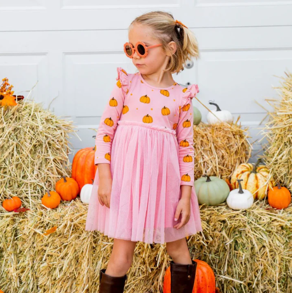 The Pumpkin Blush Long Sleeve Tutu Dress is the perfect twirl-worthy dress for celebrating Fall!