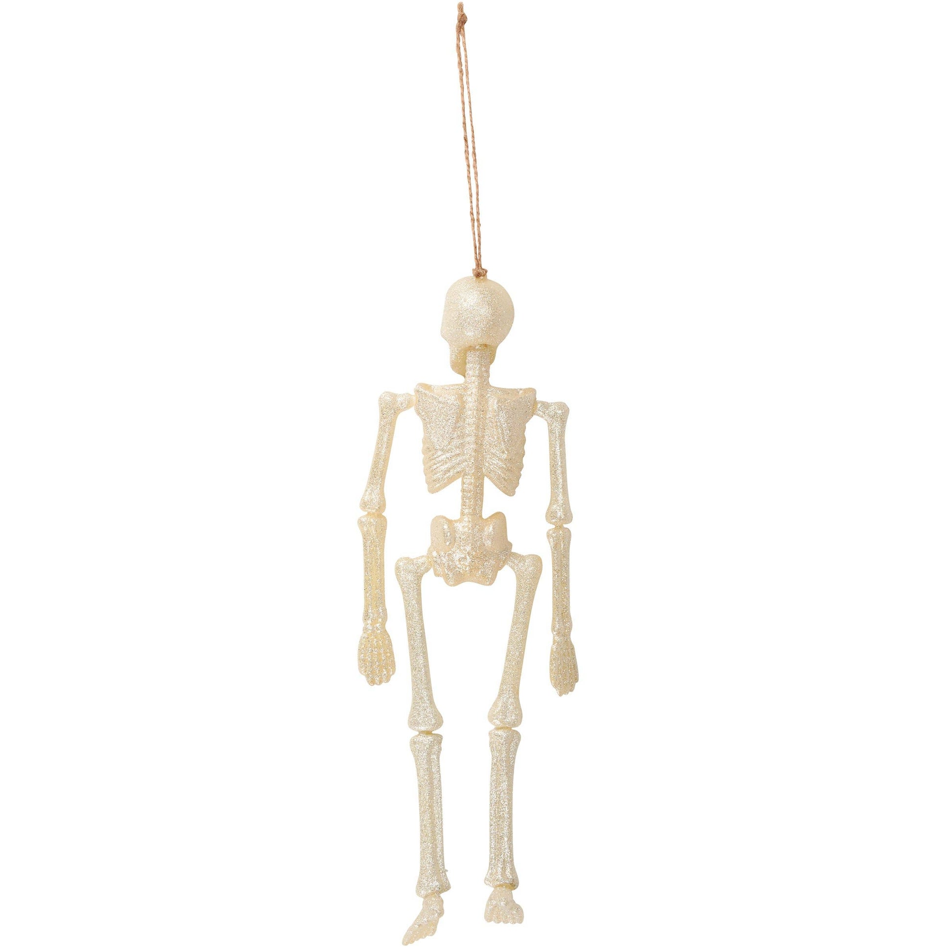 A hanging décor piece from our Halloween Collection displaying a plastic skeleton with glitter finish for added interest. Our Skeleton hanging décor is easy to hang via attached jute hanger. A fun Halloween home accent perfect for seasonal display.