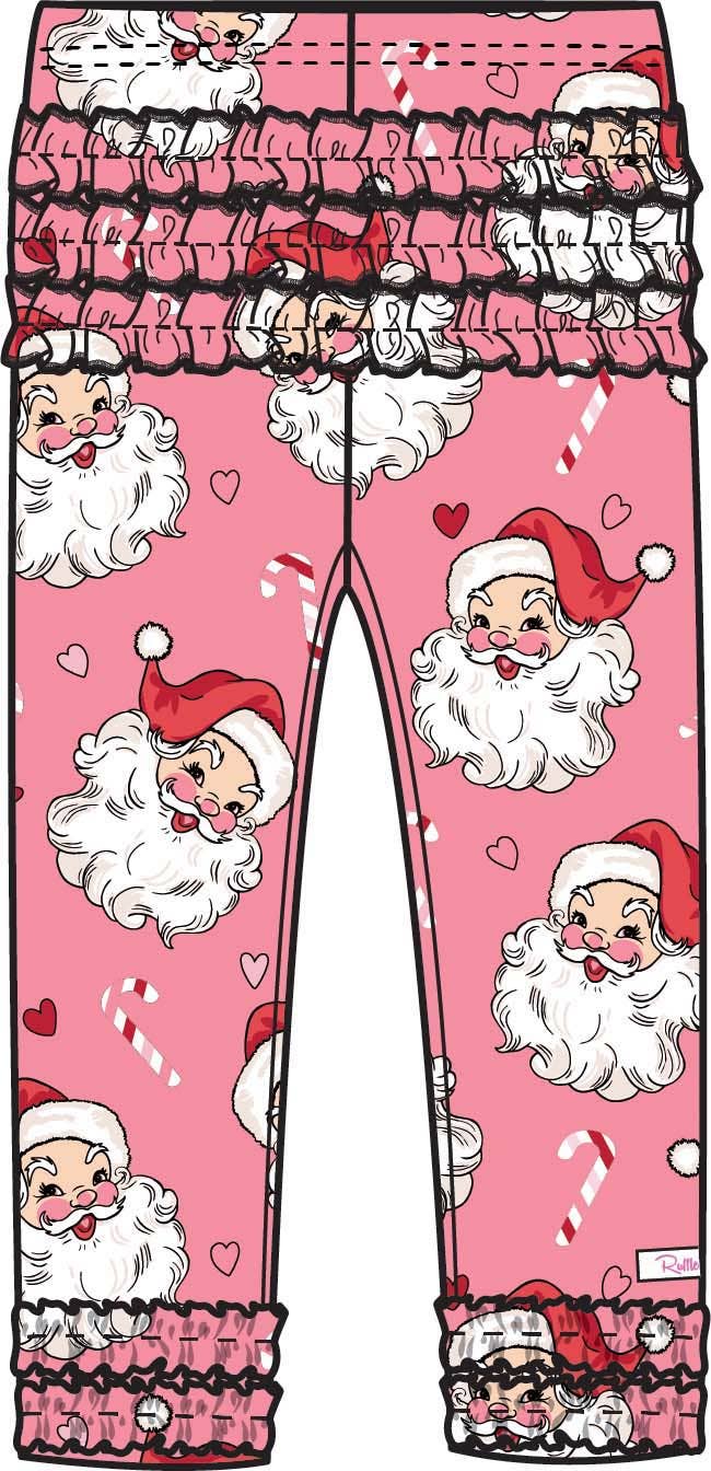 Toddler Girls Pink Santa Joy Classic Ruffle Leggings with Signature Rear Ruffles