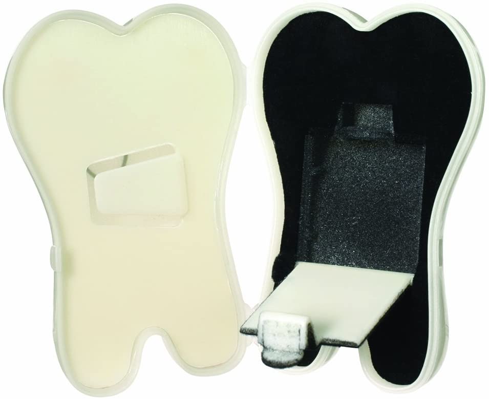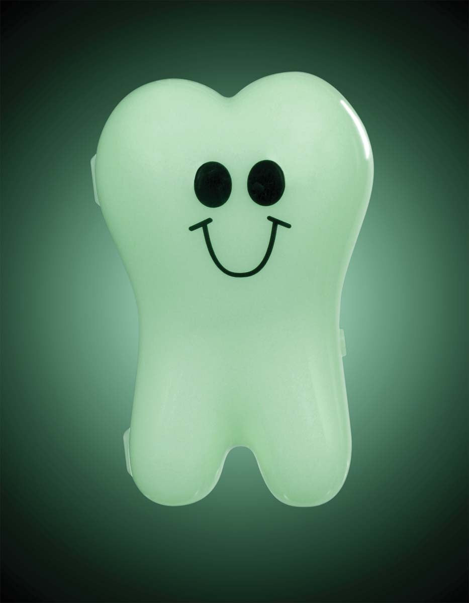 This 3.5in glow in the dark tooth keeper opens to reveal the secret tooth compartment and a clip to hold money. The Tooth Fairy doesn't just put their stamp of approval on just anything--this glowing compartment makes the job of quietly collecting all those teeth in the middle of the night SO much easier!